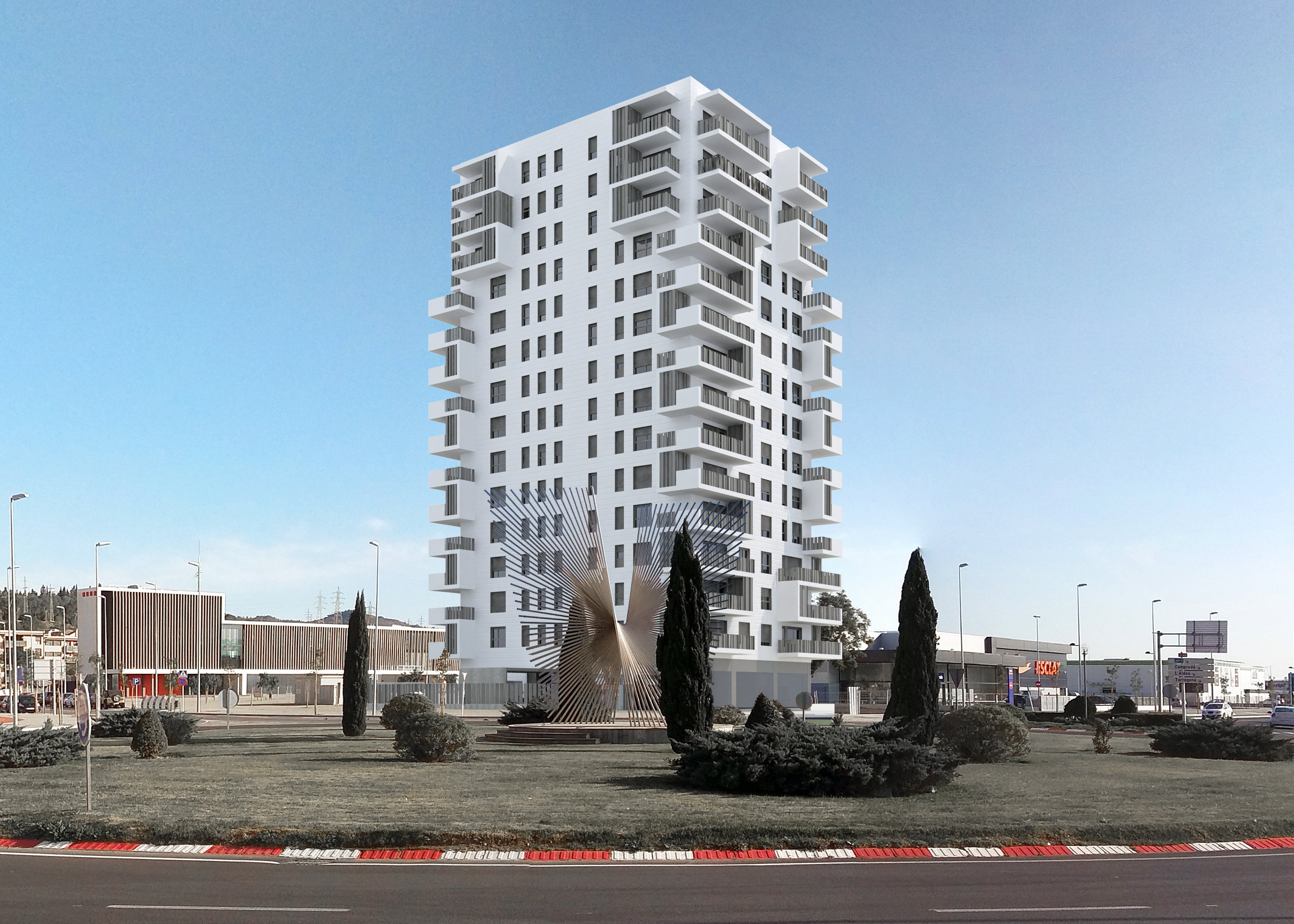 La torre d’apartaments de 14 plantes que dona la benvinguda a Tortosa destaca com un dels projectes més significatius de la ciutat. Aquest edifici, encarregat per la immobiliària Subirats Berenguer a l’arquitecte Francesc Xavier Martí, és un exemple de col·laboració arquitectònica i d’execució acurada on vaig tenir l’oportunitat de participar.