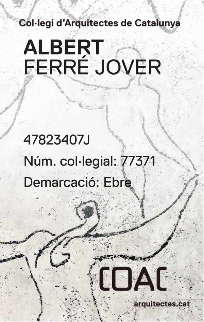 • Colegiado en: Col·legi d’Arquitectes de Catalunya, Demarcación Terres de l’Ebre